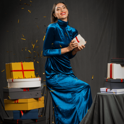 An elegant velvet dress will never go unnoticed! Combine it with elegant leather heels and a short jacket of your choice and you will have the perfect evening outfit.