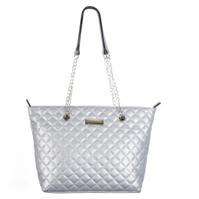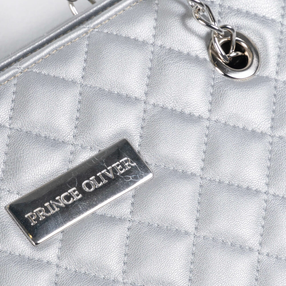 Prince Oliver Women’s Shoulder Shoulder Bag Shopper Bag Capitone Silver Eco Leather