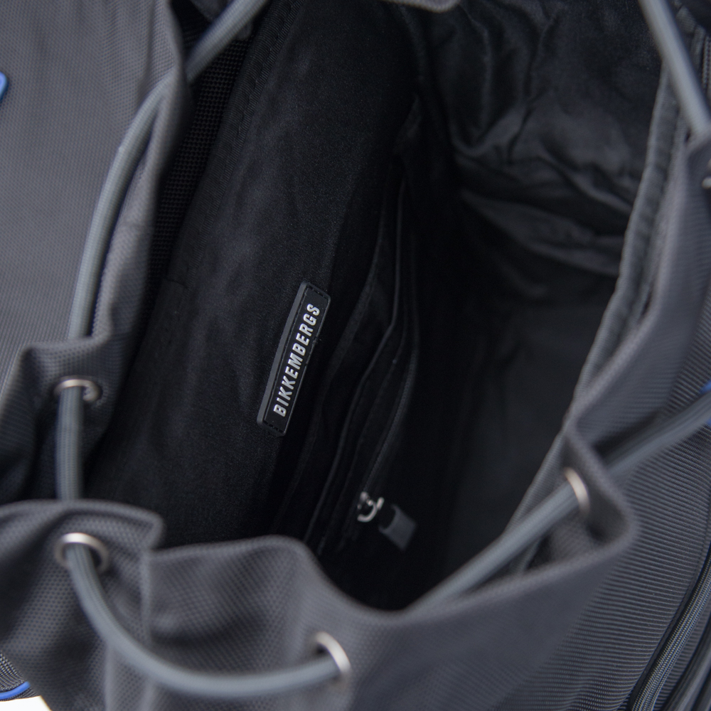 - Χαρακτηριστικό διακοσμητικό κορδόνι bungee στο μπροστινό μέρος και μπλε rubber tag με το λογότυπο Bikkembergs.