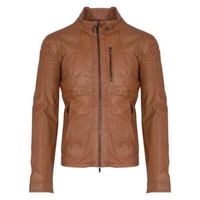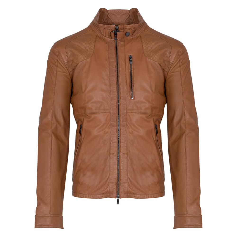 Racer Jacket Καφέ in Sheep Nappa Leather Modern Fit