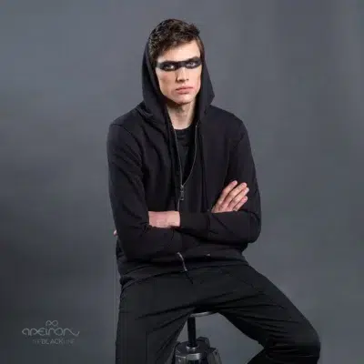 Φούτερ Ζακέτα Μαύρη Black Line Apeiron 100% Cotton (Modern Fit)