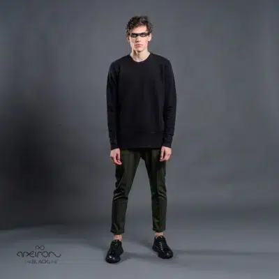 Φούτερ Μαύρο Round Neck Black Line Apeiron 100% Cotton (Modern Fit)