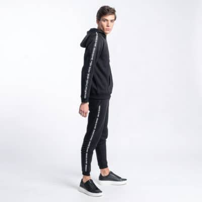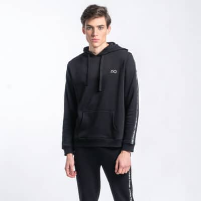 Φούτερ Με τρέσα Μαύρο με Κουκούλα (Modern Fit)
