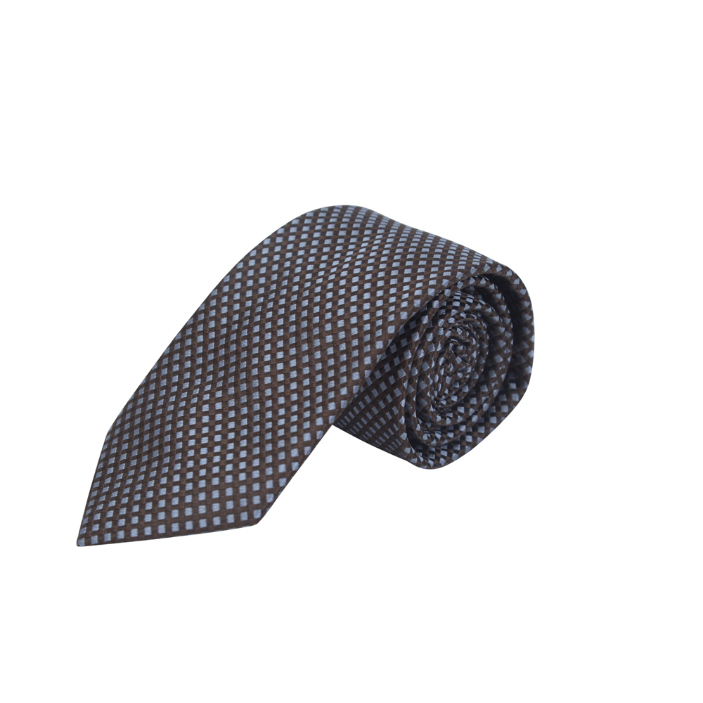 Γραβάτα Καφέ με Γεωμετρικό Pattern in Silk