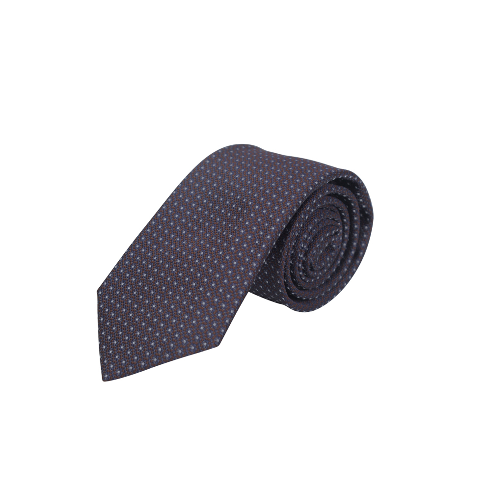 Γραβάτα Καφέ με Γεωμετρικό Pattern in Silk (Φάρδος 7 cm)