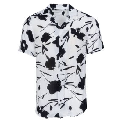 Πουκάμισο Λευκό Floral Μαύρο 100% Viscose (Modern Fit)