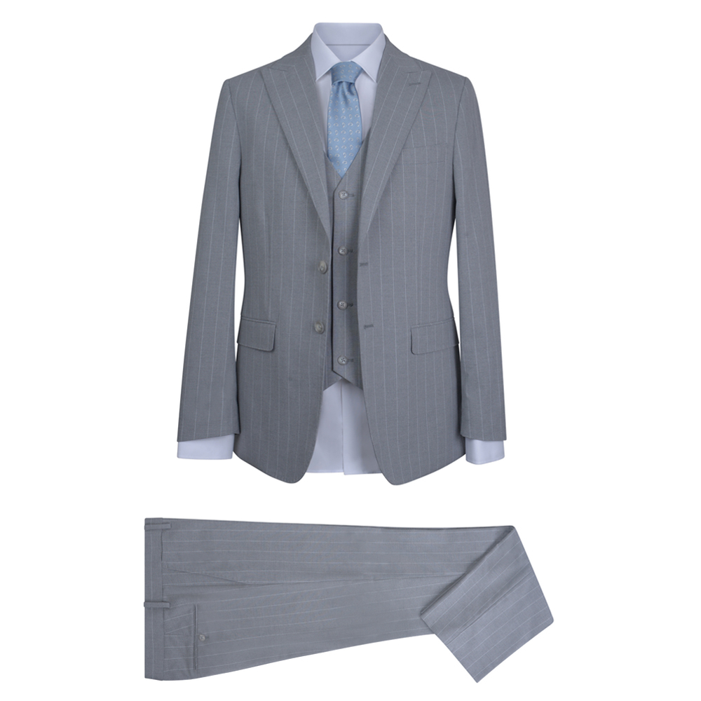 Κοστούμι με Γιλέκο Three-Piece Γκρι Ριγέ