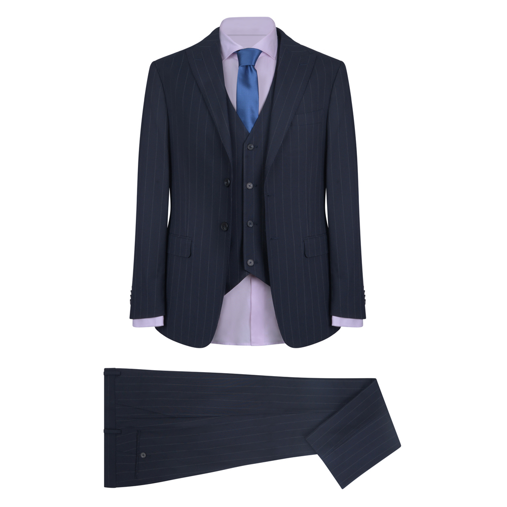 Κοστούμι με Γιλέκο Three-Piece Μπλε Ριγέ Modern Fit