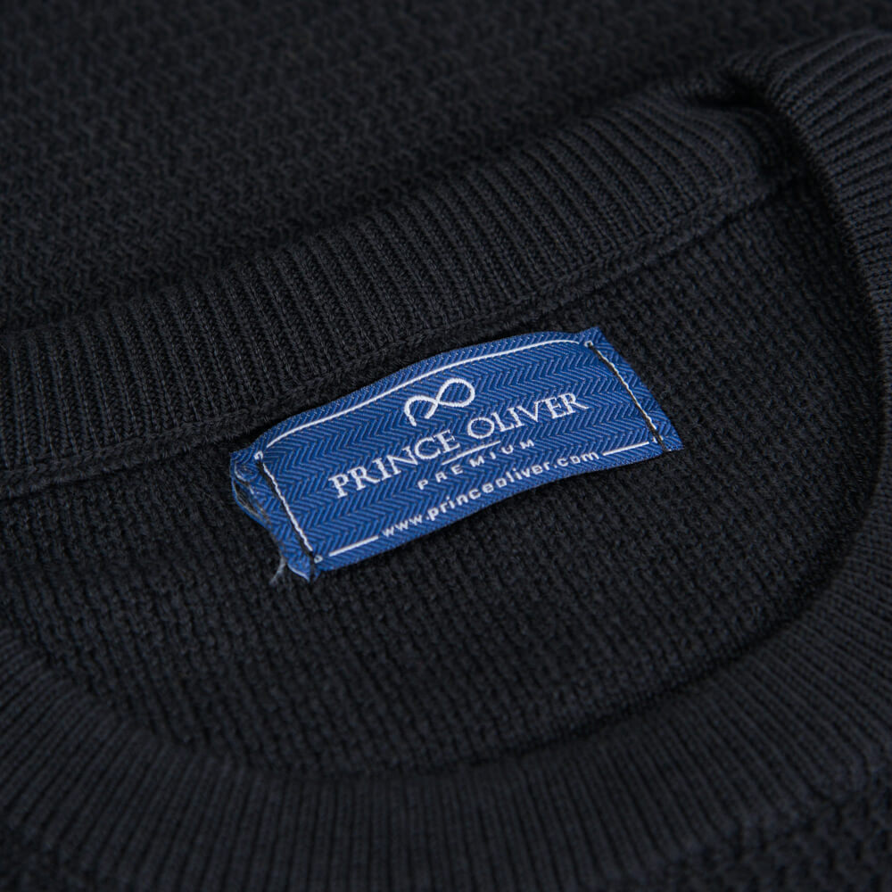 Prince Oliver Πουλόβερ Μαύρο Round Neck in Cotton.