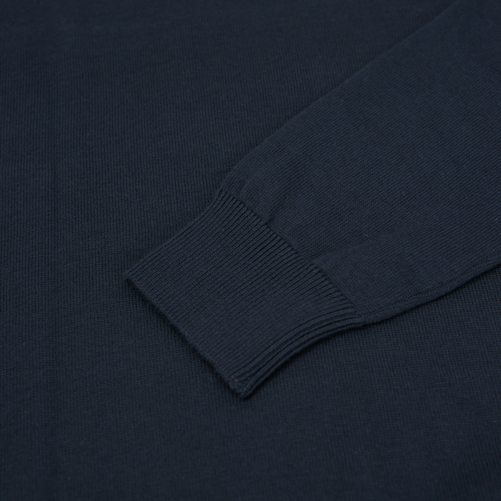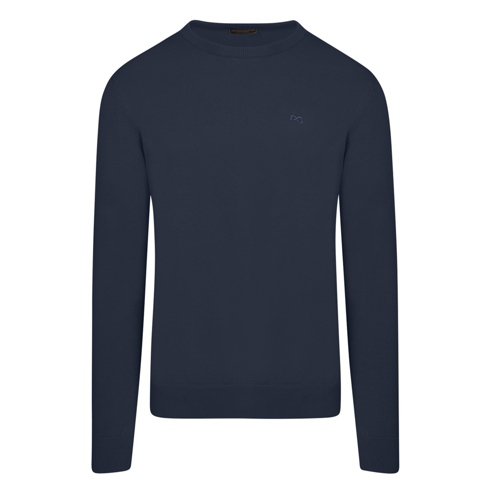 Crew- Neck Logo-Embroidered Πλεκτή Μπλούζα Μπλέ Σκούρο in Cotton Modern Fit