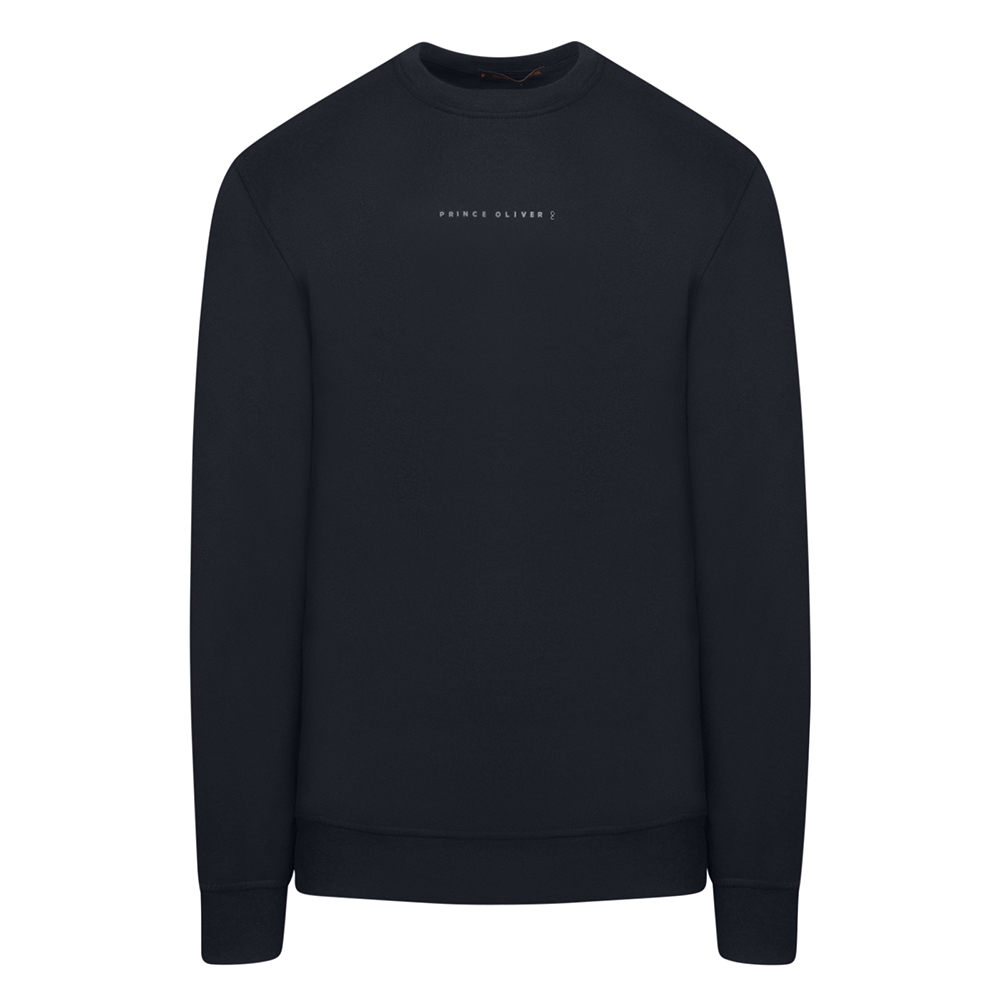 Essential Φούτερ Round Neck Μπλε Σκούρο με Logo Print Modern Fit
