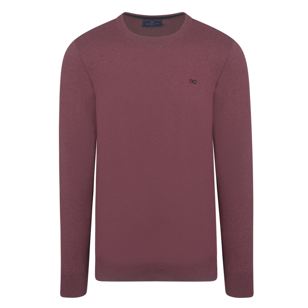 Logo-Embroidered Πλεκτή Μπλούζα Μπορντό in Cotton Modern Fit