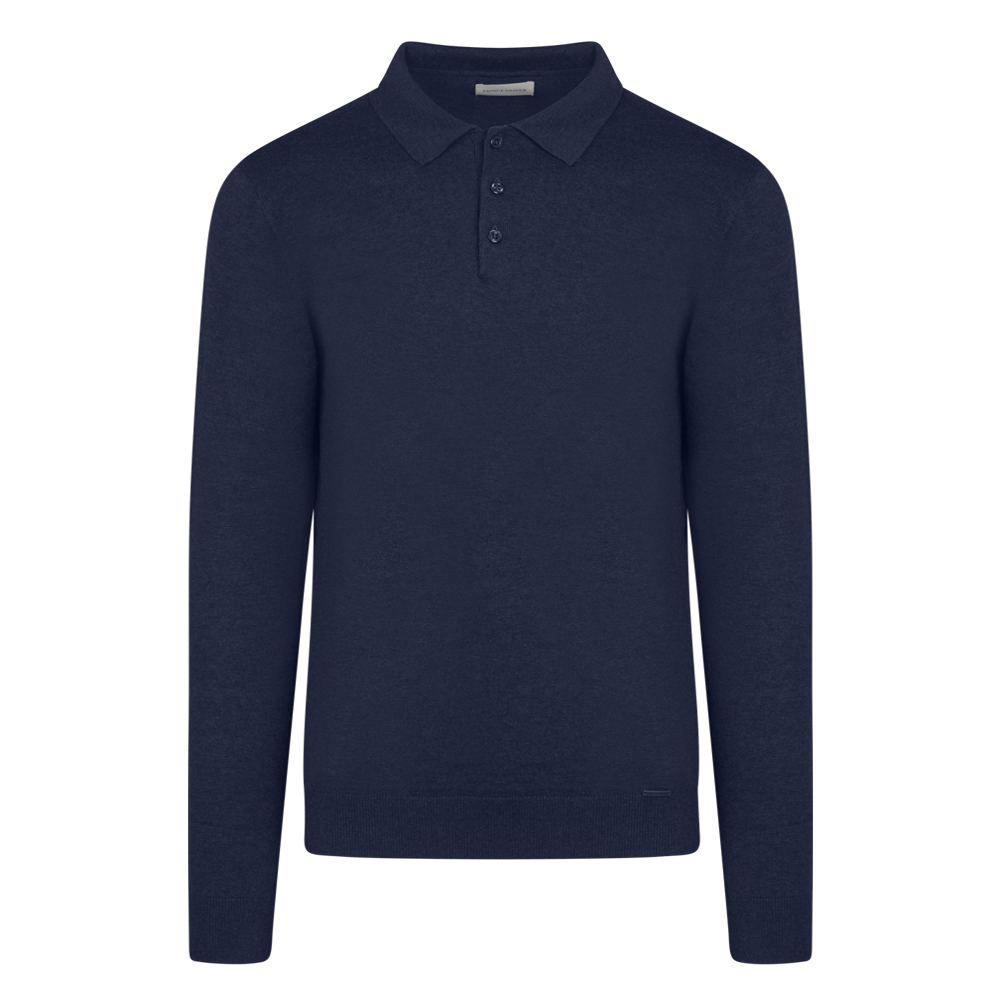 Πλεκτό Polo Μπλε Σκούρο in Cotton Modern Fit