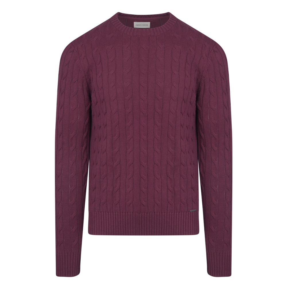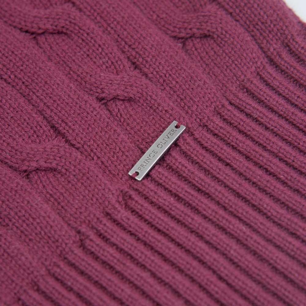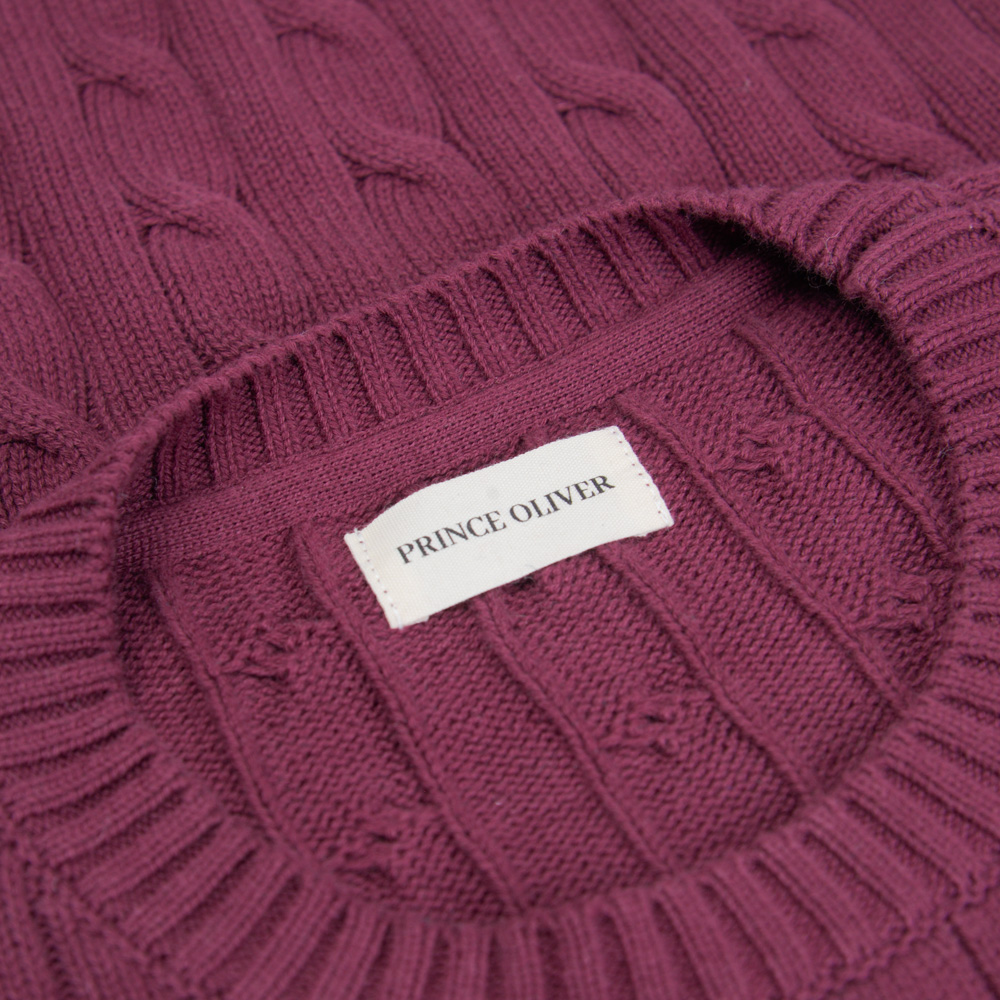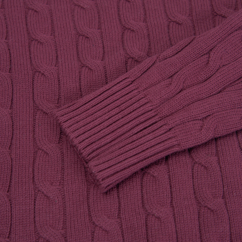 Πουλόβερ Μπορντό με Cable-Knit Πλέξη in Cotton Modern Fit