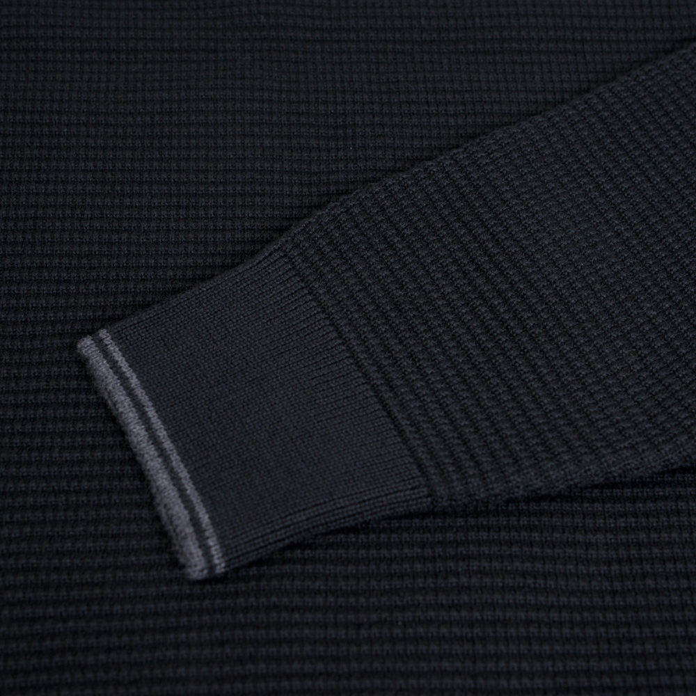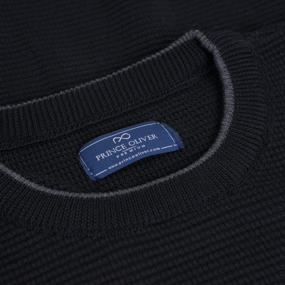 Premium Μπλούζα Μαύρη με Structured-Knit Πλέξη & Stripe Details in Cotton Modern Fit