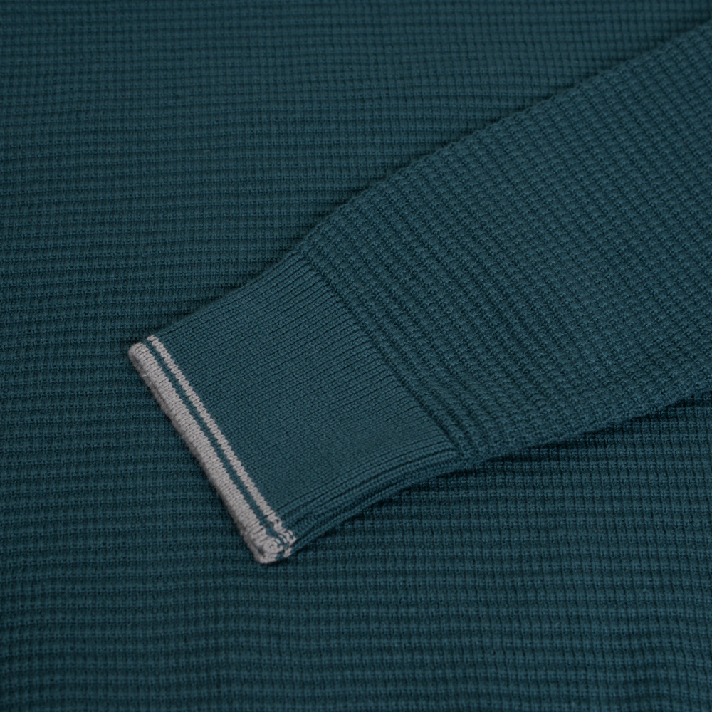 Premium Μπλούζα Πράσινη με Structured-Knit Πλέξη & Stripe Details in Cotton Modern Fit