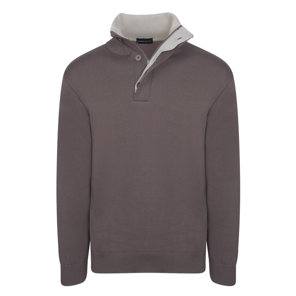 Premium Zip-Neck Πλεκτή Μπλούζα Καφέ Modern Fit