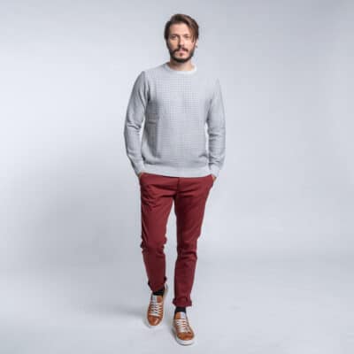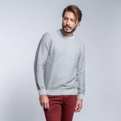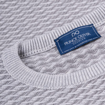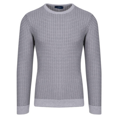 Prince Oliver Πουλόβερ Γκρι Round Neck Πλέξη Ζακάρ (Modern Fit)