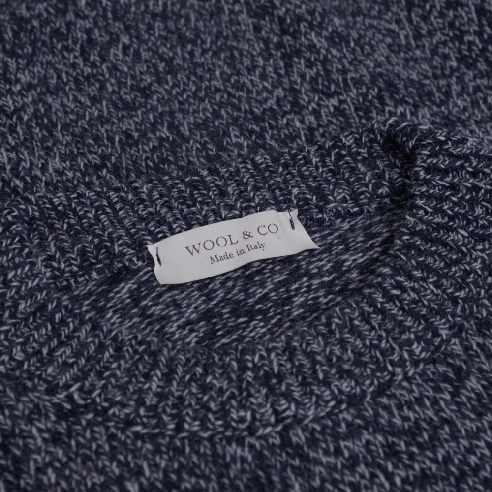 WOOL & CO Crew Neck Melange Πλεκτή Μπλούζα Μπλε in Wool Blend Modern Fit