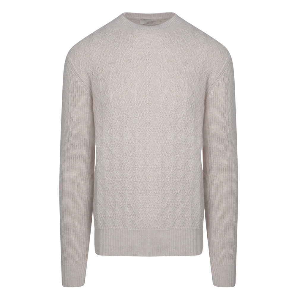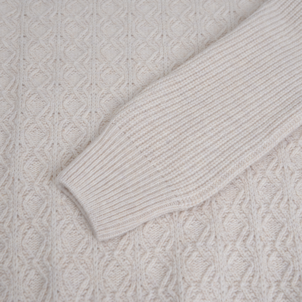 Crew Neck Μπλούζα Εκρού με Cable-Knit Πλέξη in Soft Shetland Wool