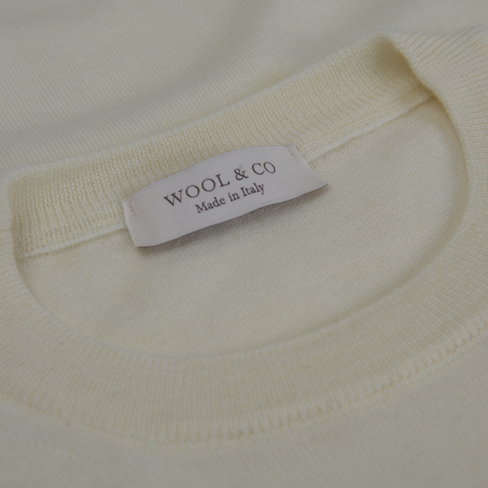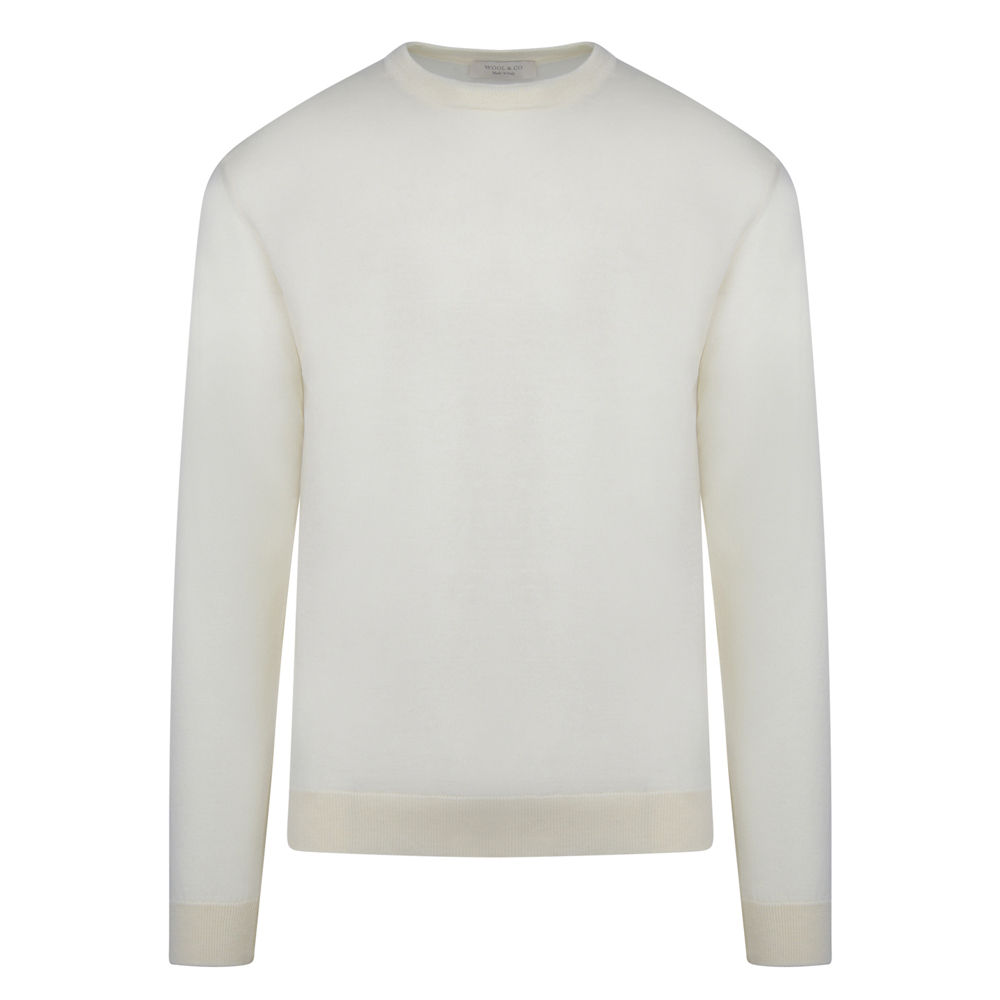 WOOL & CO Crew Neck Πλεκτή Μπλούζα Εκρού in Wool Modern Fit
