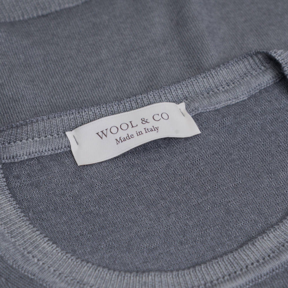 WOOL & CO Crew Neck Πλεκτή Μπλούζα Γκρι in Wool Modern Fit