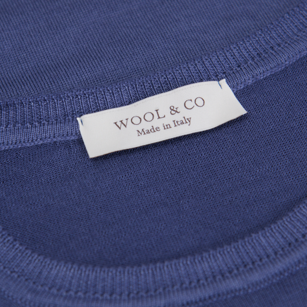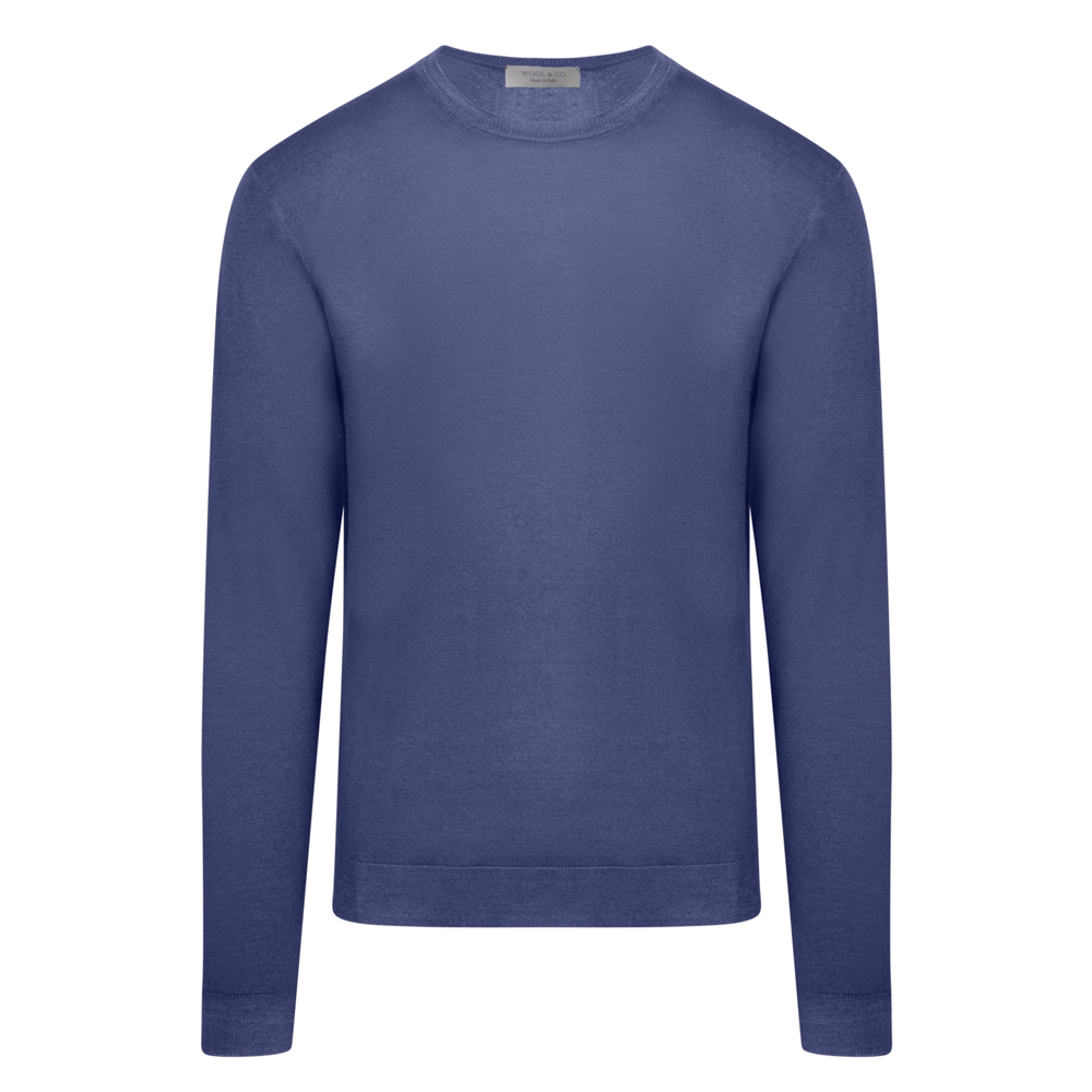 WOOL & CO Crew Neck Πλεκτή Μπλούζα Μπλε in Wool Modern Fit