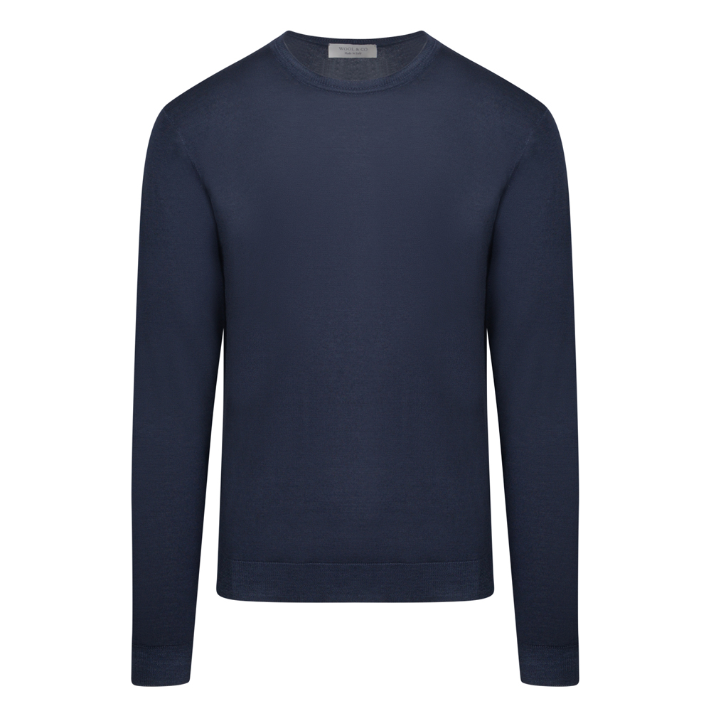 WOOL & CO Crew Neck Πλεκτή Μπλούζα Μπλε Σκούρο in Wool Modern Fit