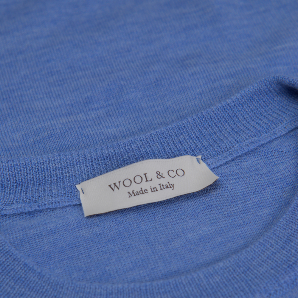 WOOL & CO Crew Neck Πλεκτή Μπλούζα Σιέλ in Wool Modern Fit