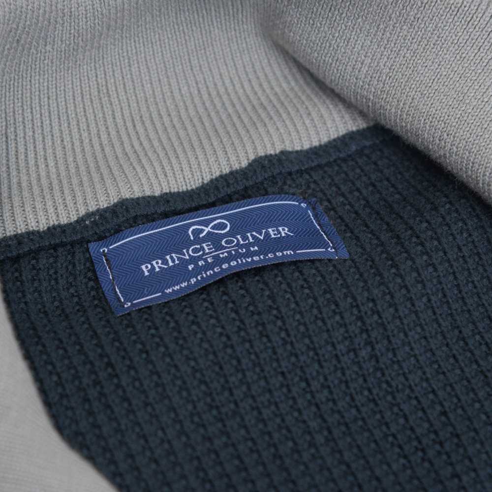 Premium Μπλούζα Γκρι με Structured-Knit Πλέξη & Stripe Details in Cotton Modern Fit