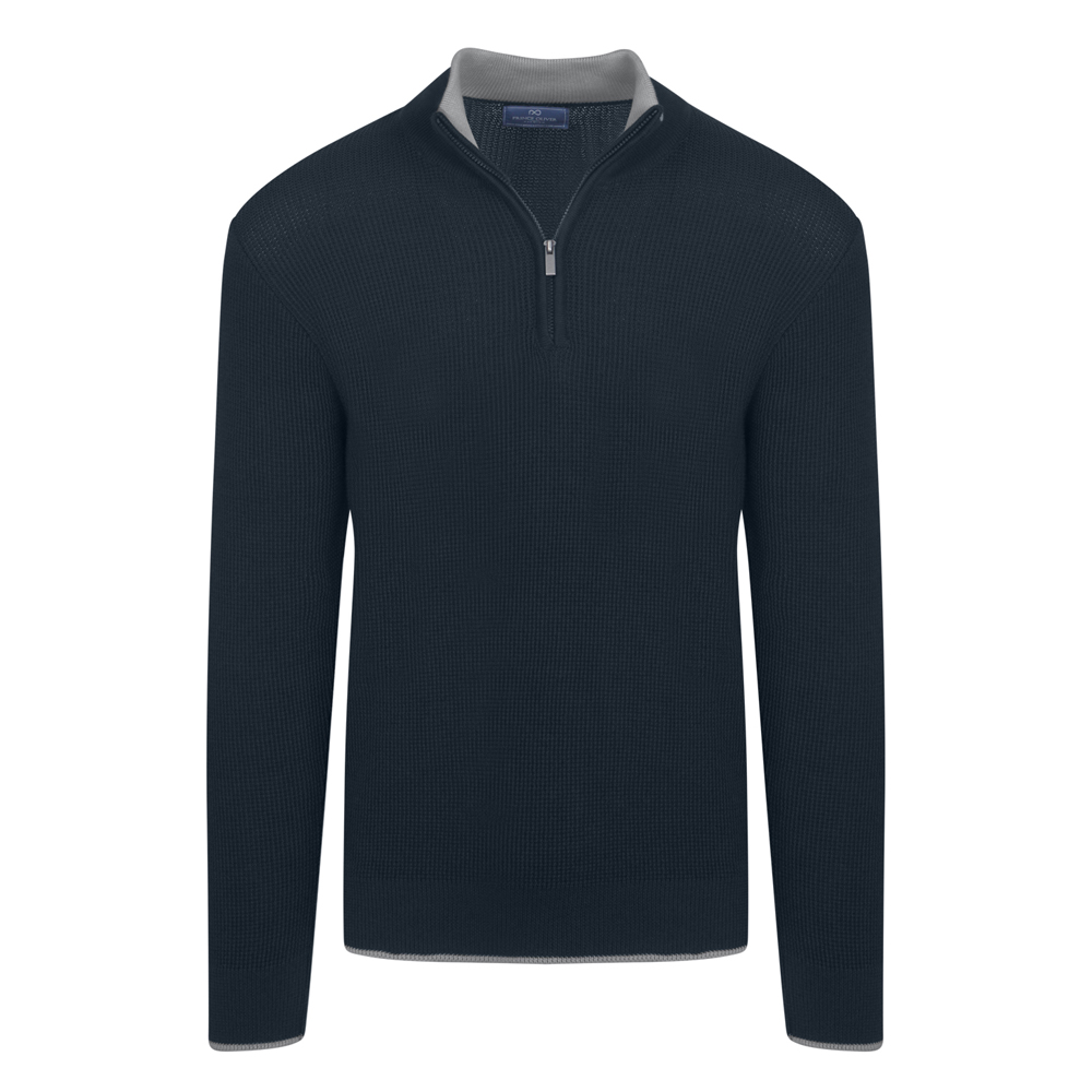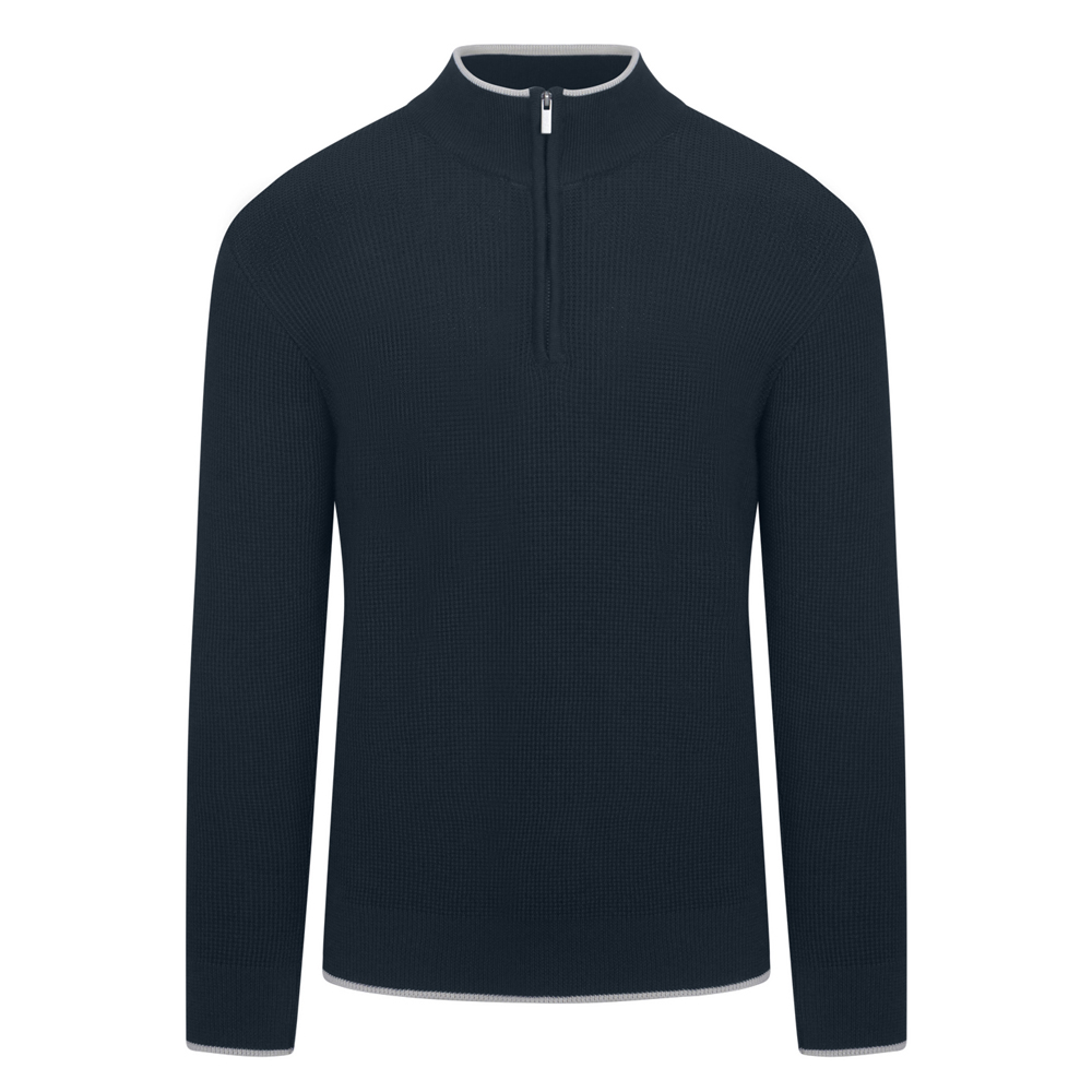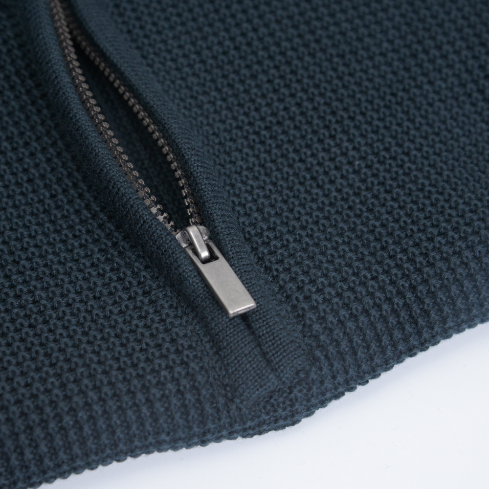 Zip-Neck Πλεκτή Μπλούζα Μπλε with Stripe Details in Cotton Modern Fit