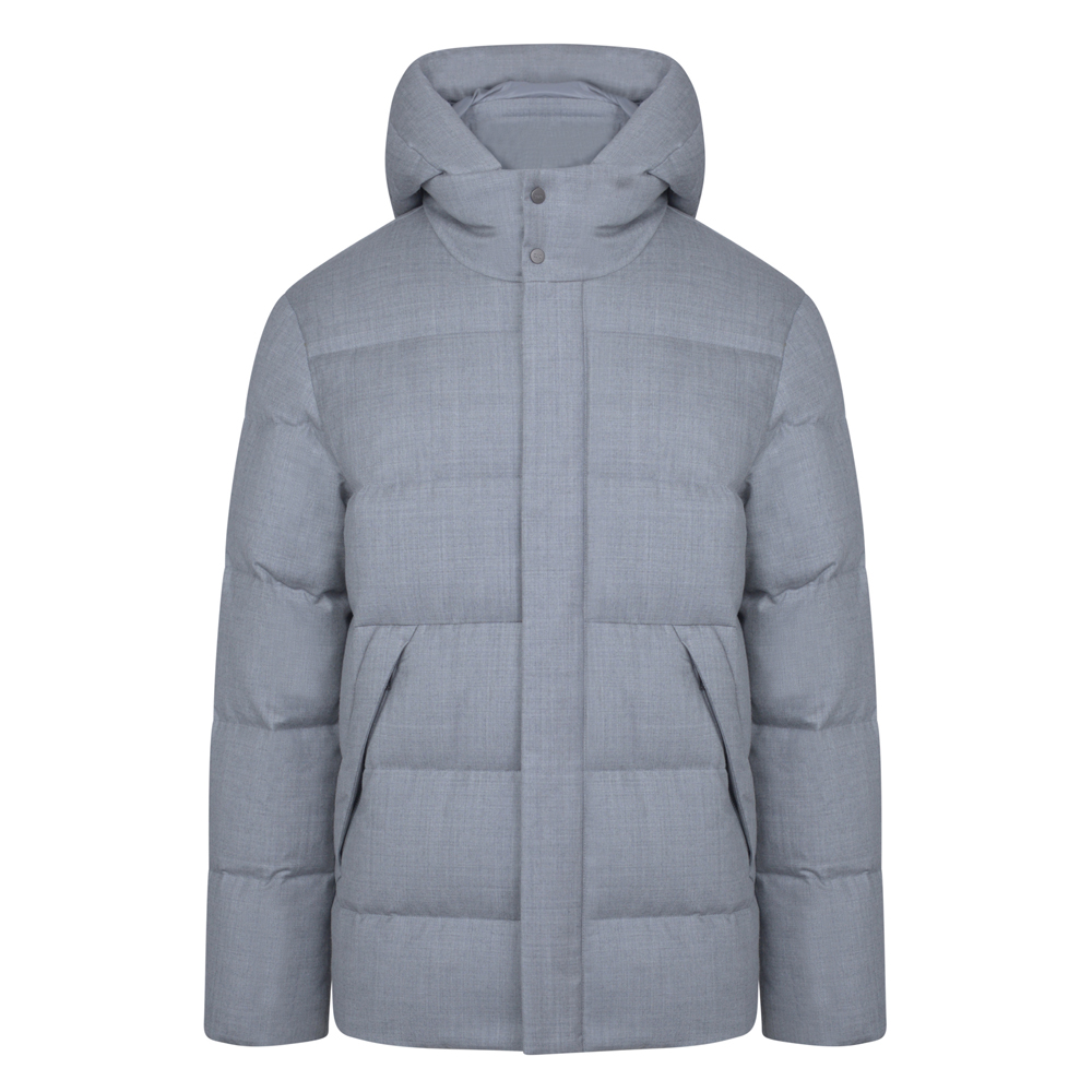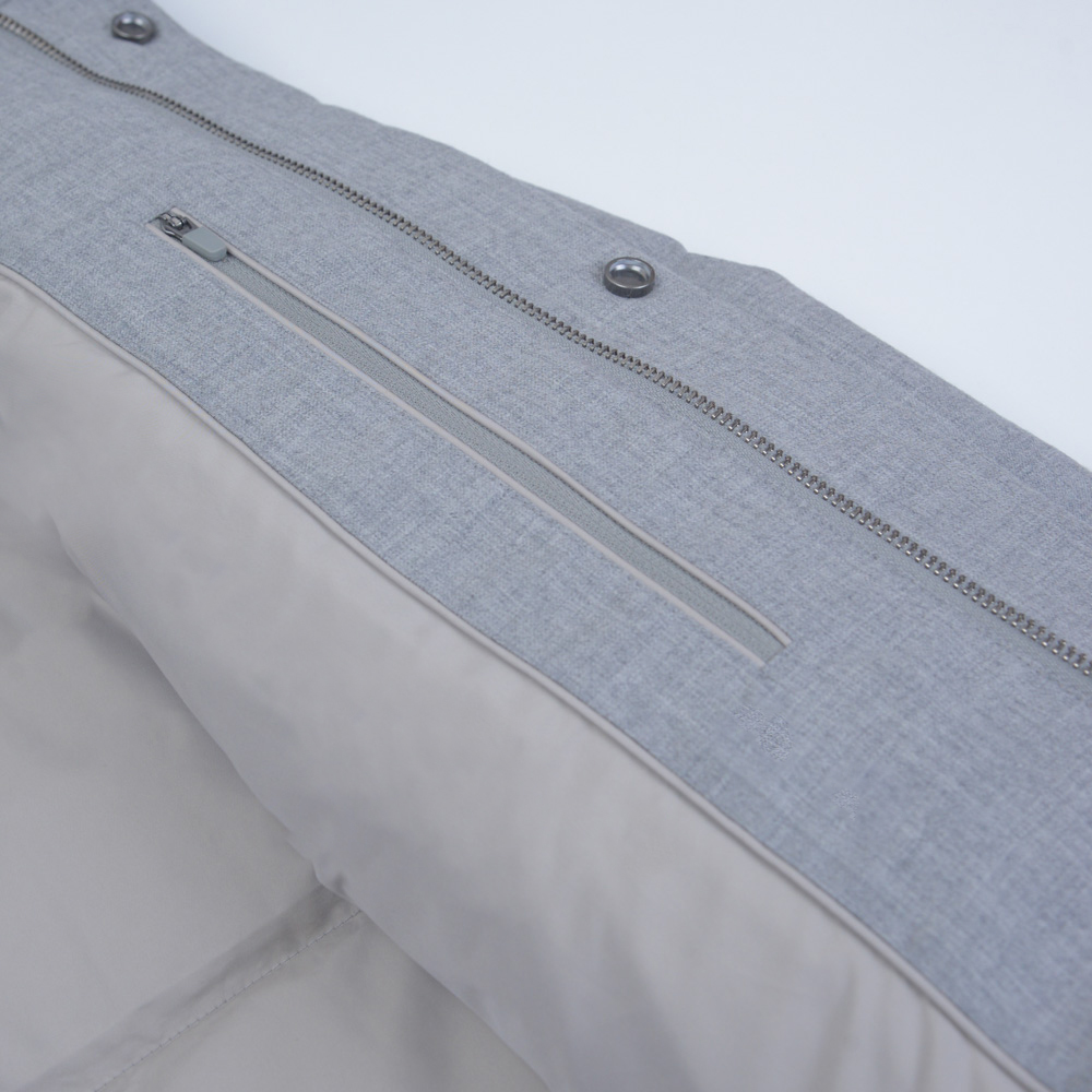 Αναβαθμίστε το χειμερινό σας στιλ με το καπιτονέ μπουφάν, κατασκευασμένο από 100% καθαρό μαλλί και γεμισμένο με υψηλής ποιότητας πούπουλο για κορυφαία θερμομόνωση και άνεση. Με όρθιο γιακά και αποσπώμενη κουκούλα με κρυφό φερμουάρ στο επάνω μέρος του γιακά, εξασφαλίζει ευελιξία και προστασία σε κάθε καιρική συνθήκη.
