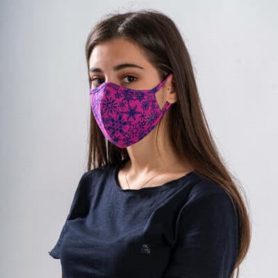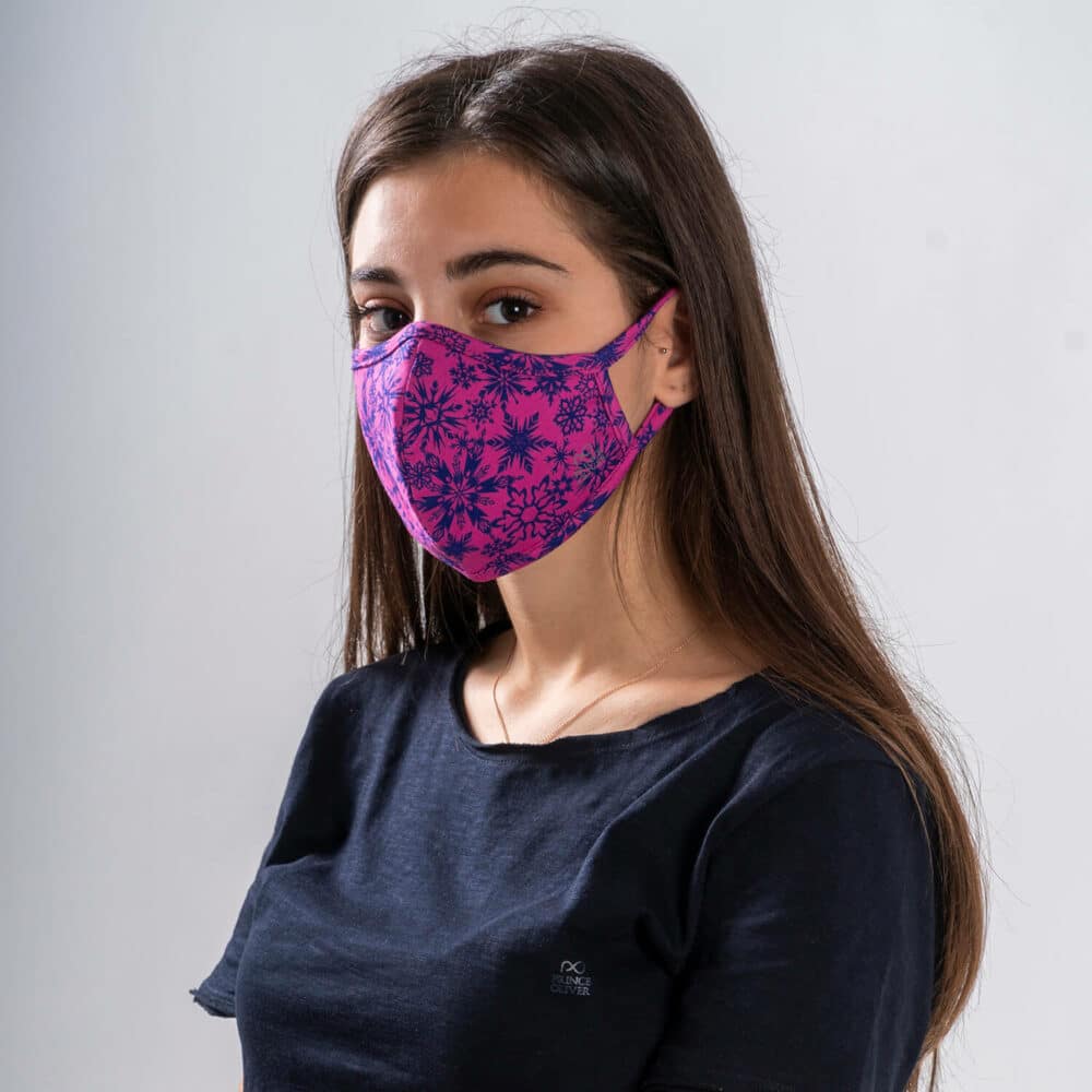 Επαναχρησιμοποιούμενη αποστειρωμένη μάσκα από υψηλής ποιότητας βαμβάκι – ελαστάν που πλένεται στους 90 βαθμούς και προσφέρει εξαιρετικά απαλή υφή, τέλεια εφαρμογή και τεράστια αντοχή καθώς ο κύκλος ζωής τους υπερβαίνει τα 300 πλυσίματα.