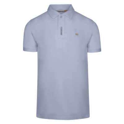 Two Tone Mao Polo Double Pique Μπλε in Cotton Regular Fit