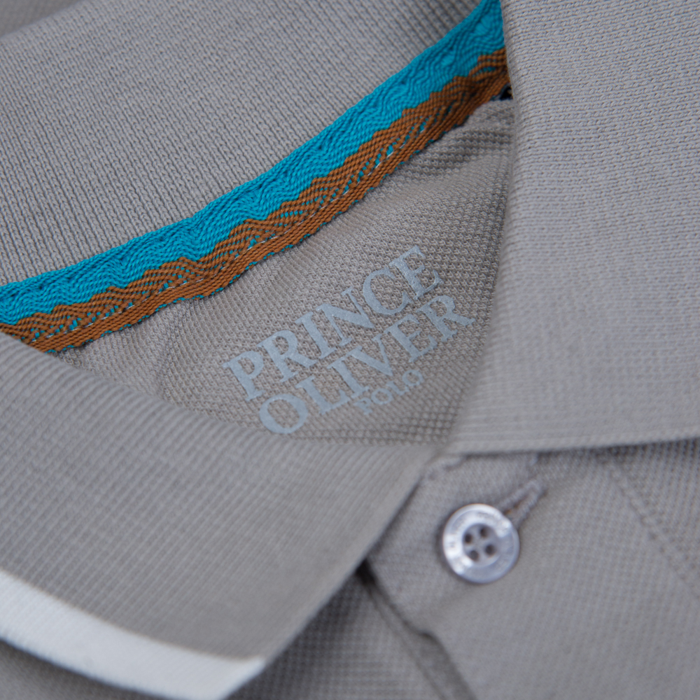 Two Tone Polo Double Pique Γκρι Ανοιχτό in Cotton Regular Fit