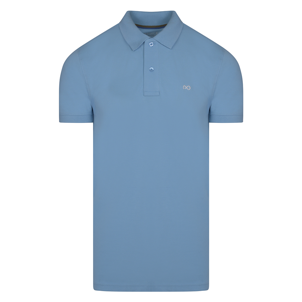 Polo Double Pique με 3D Knit Logo & Print Collar Dusty Blue in Cotton