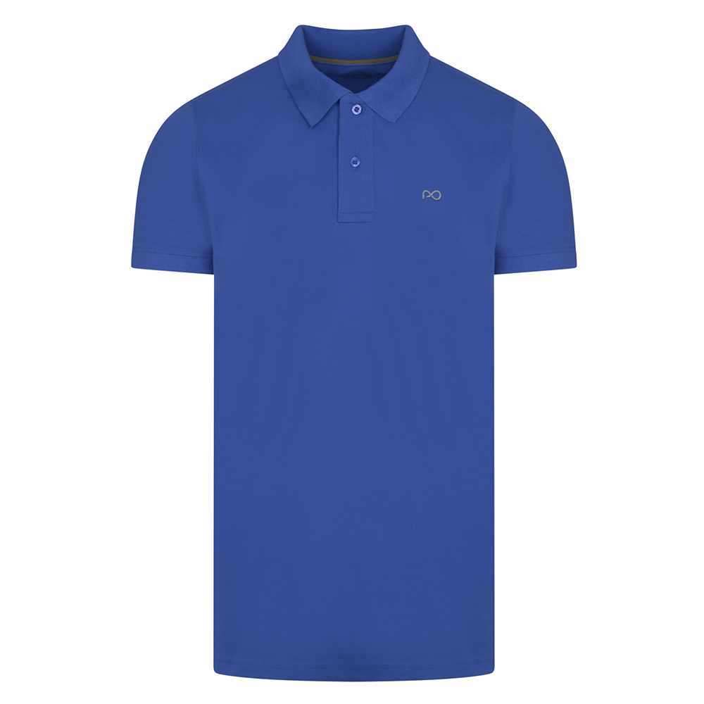 Polo Double Pique με 3D Knit Logo & Print Collar Μπλε Ραφ in Cotton
