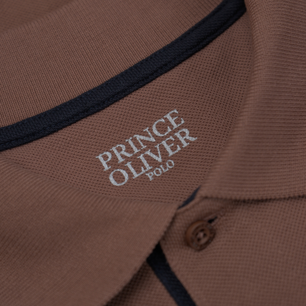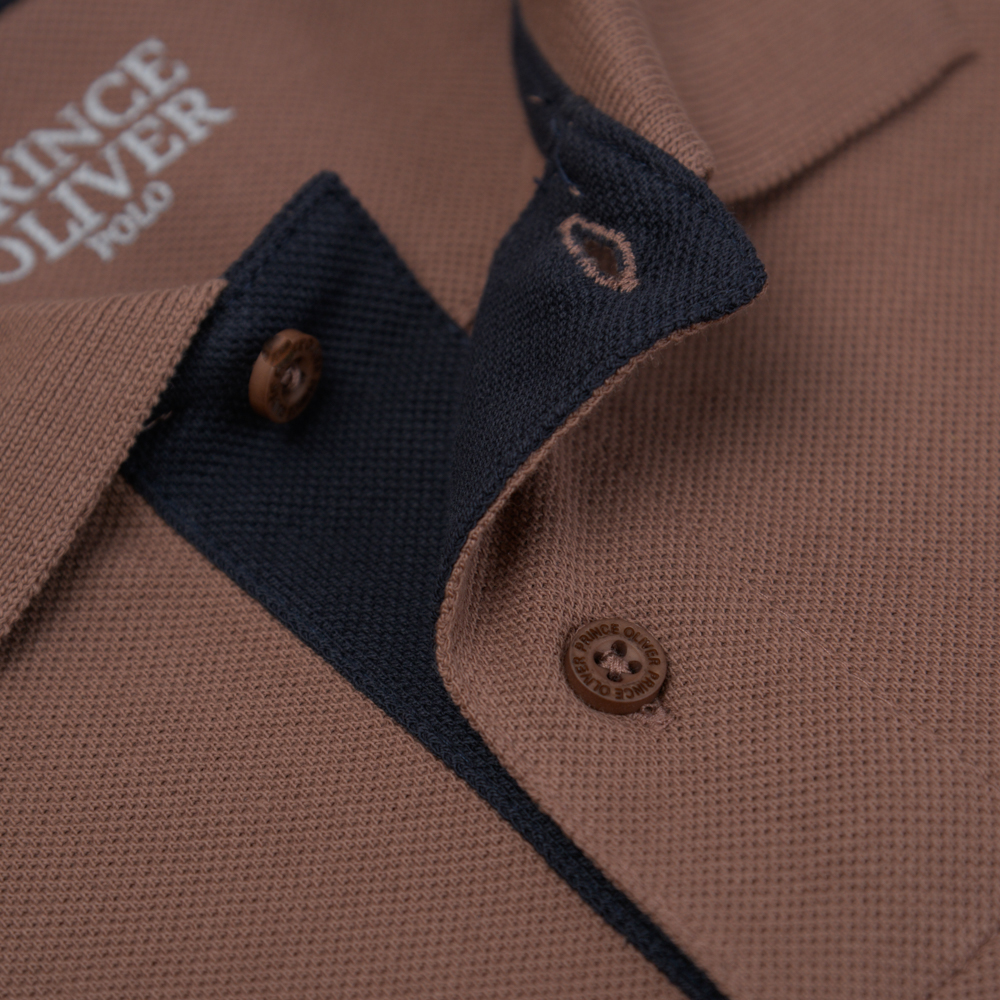 Polo Double Pique Two Tone με 3D Logo Καφέ in Cotton Regular Fit
