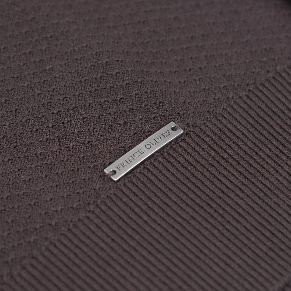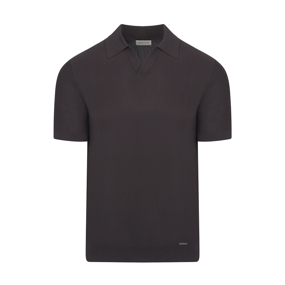 Polo Καφέ Johnny Collar με Jacquard Structure Πλέξη