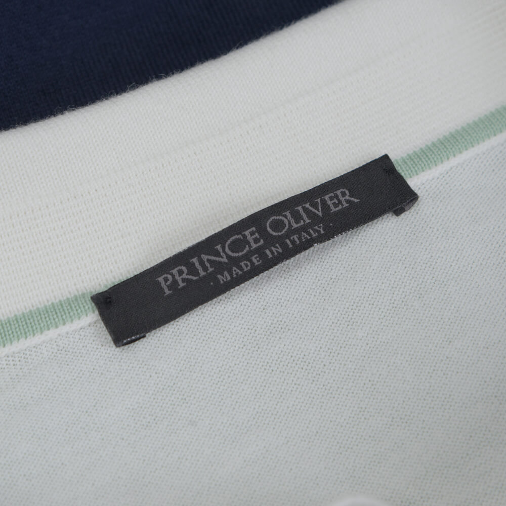 Prince Oliver Polo Λευκό in Cotton with Block Stripes (Modern Fit)