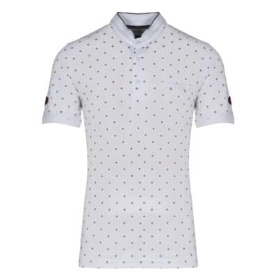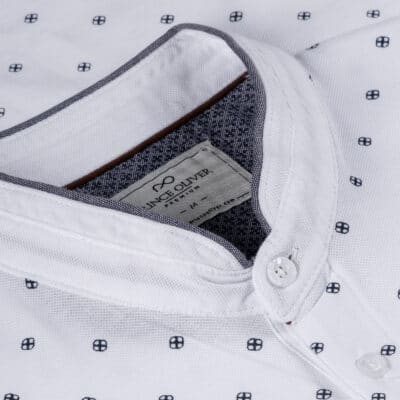 Prince Oliver Polo Λευκό Με Σχέδιο και Mao Γιακά 100% Cotton