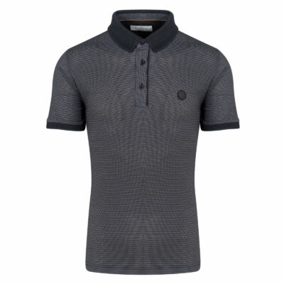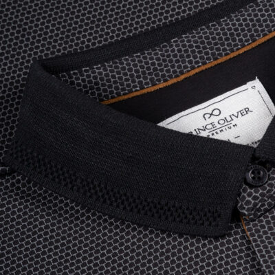 Prince Oliver Premium Polo Μαύρο με Μικροσχέδιο 100% Cotton (Modern Fit)