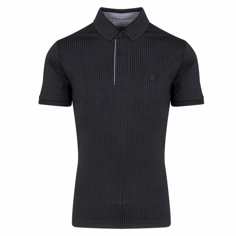 Prince Oliver Premium Polo Μαύρο με Μικροσχέδιο 100% Cotton (Modern Fit)
