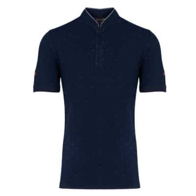 Two Tone Mao Polo Double Pique Μπλε Σκούρο in Cotton Regular Fit