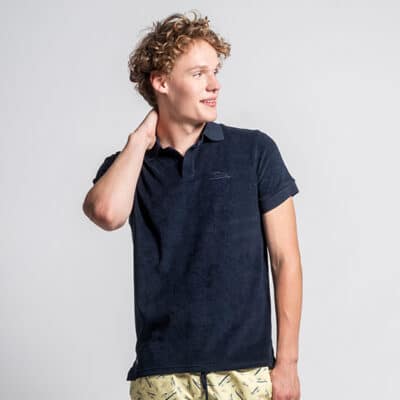 Απαλό και κομψό polo με βελούδινη πετσετέ υφή, ιδανικό για όλες τις παραθαλάσσιες περιπέτειες σας, αλλά και ασύγκριτα δροσερό ακόμη και στις πιο υψηλές θερμοκρασίες, θα συνοδεύσει όλες τις χαλαρές εμφανίσεις σας. Ενισχύεται στυλιστικά από την κεντημένη παράσταση στο στήθος, που απεικονίζει ένα σκυλάκι που κάνει σερφ.