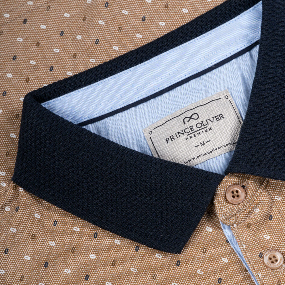 Prince Oliver Premium Polo Μπεζ με Μικροσχέδιο