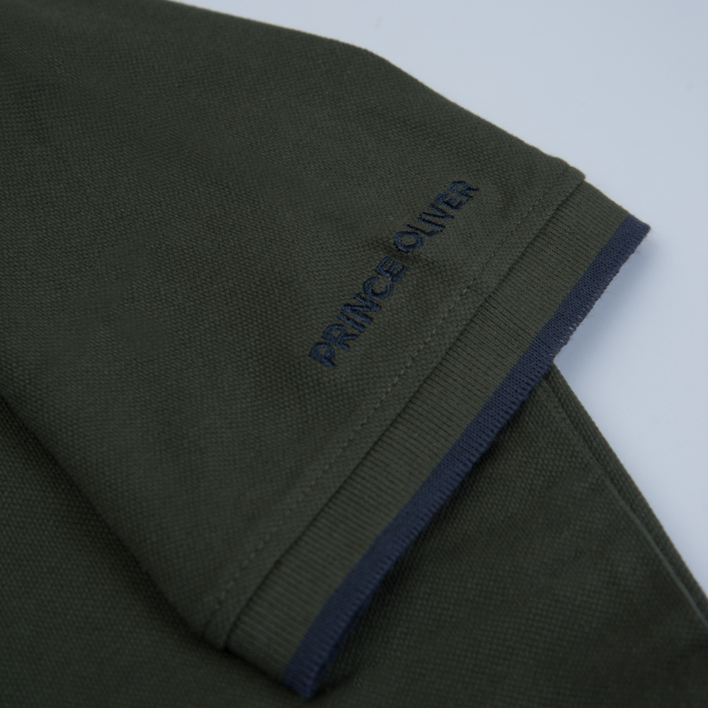 Two Tone Polo Double Pique Λαδί in Cotton