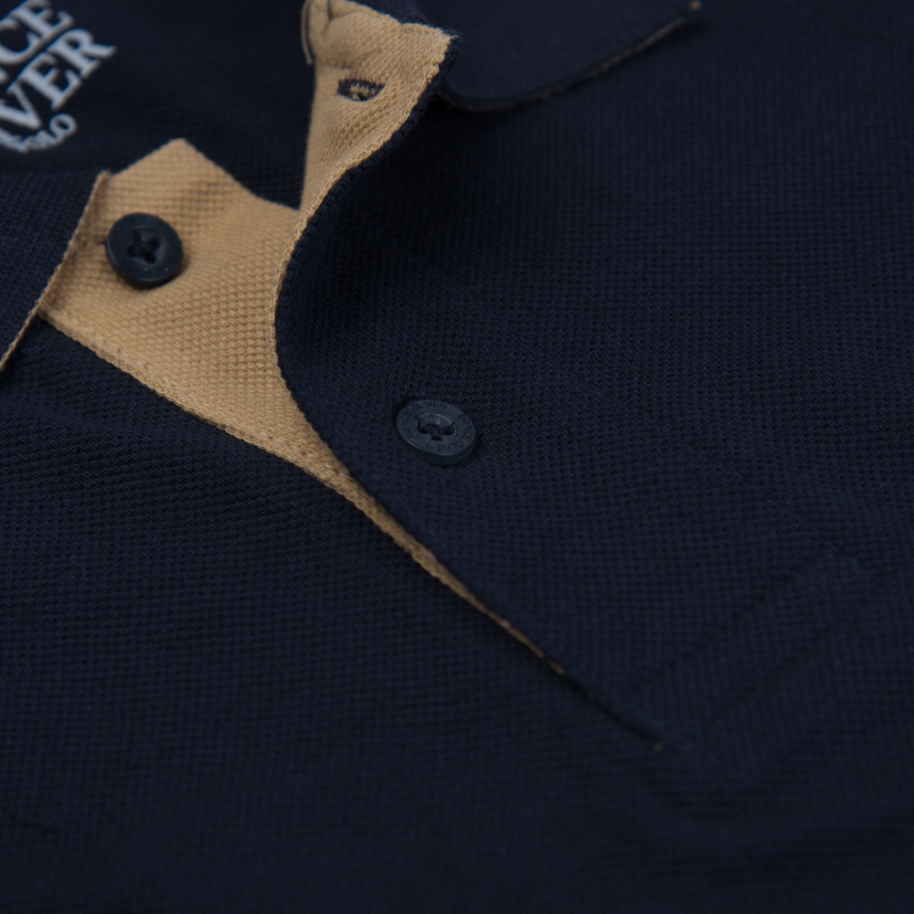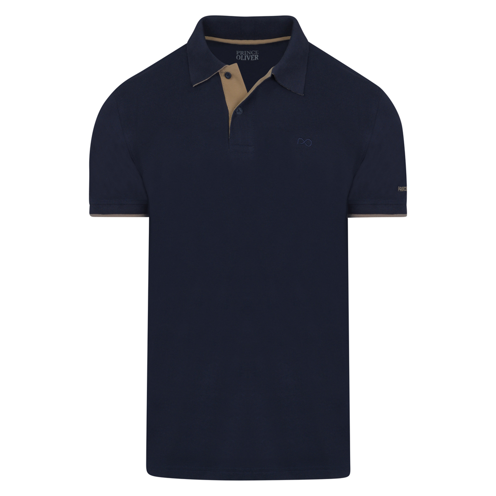 Two Tone Polo Double Pique Μπλε Σκούρο in Cotton