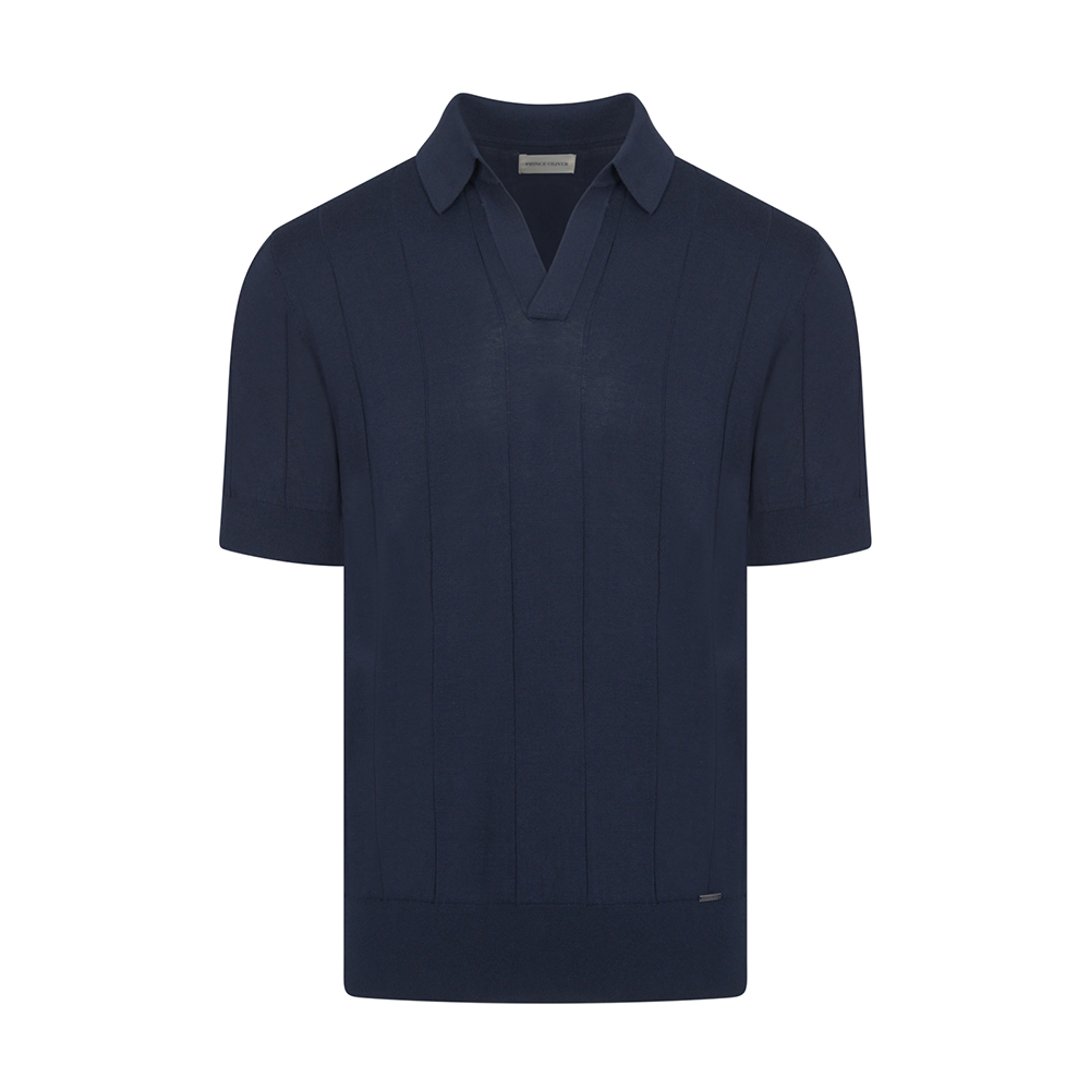Vertical Ribbed Knit Polo Μπλε Σκούρο με Johnny Collar