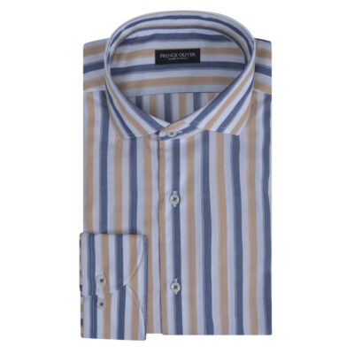 Superior Πουκάμισο Ριγέ Λευκό/Μπλε/Μπεζ 100% Fine Cotton (Modern Fit)